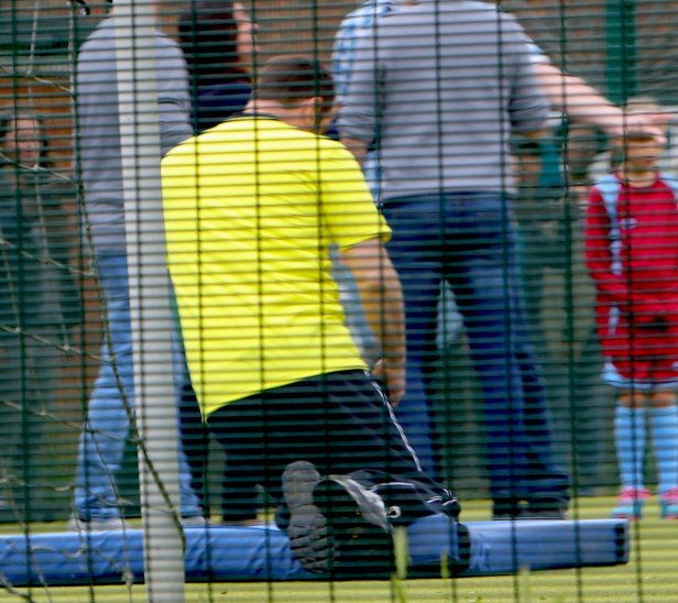 As Mick tries his best to settle fraying tempers between Mitch and the dad of the opposition he drops to the floor clutching his chest.