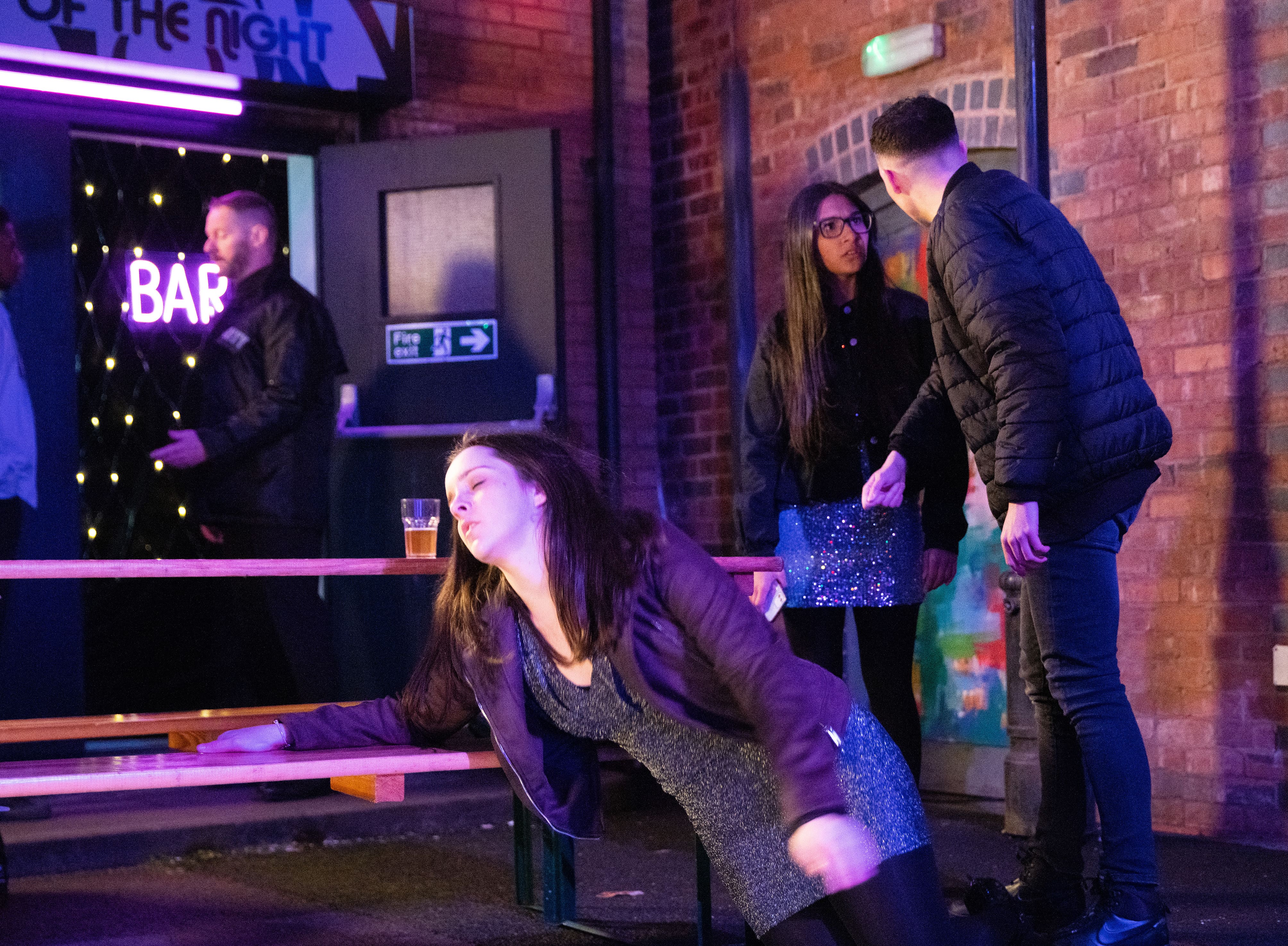 AMY HITS THE CLUB AND THEN THE FLOOR Jacob approaches Amy, Asha and Summer and suggests they go clubbing in town after the Valentine’s Dance. Amy, Asha, Summer and Aadi meet up with Jacob outside a club. In the club, Amy becomes increasingly woozy. Suddenly she collapses and Jacob yells at Asha, Aadi and Summer to call an ambulance.