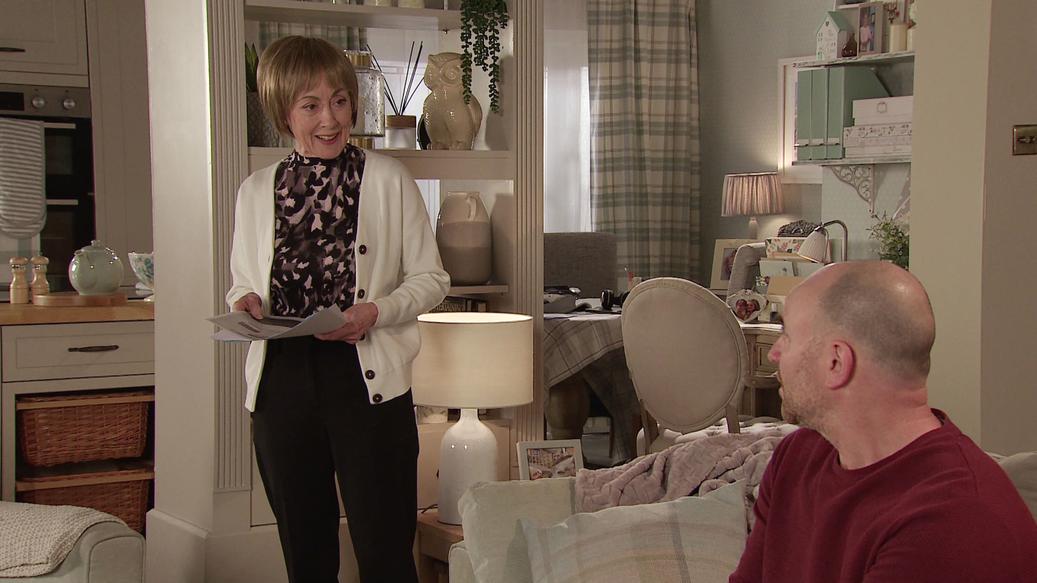 ELSEWHERE When Bernie offers them a voucher for Speed Daal, Gemma’s thrilled. When Yasmeen reveals that the voucher isn’t valid on Valentine’s Day, Chesney’s furious. Gemma reveals that all the reward money was returned and Dev gave the anonymous donation to a homeless charity. At No.4, Sally suggests to Tim they have a naughty game of landlords and tenants. When Elaine points out that Tim needs to relax and any sex is out of the question, Sally’s furious.