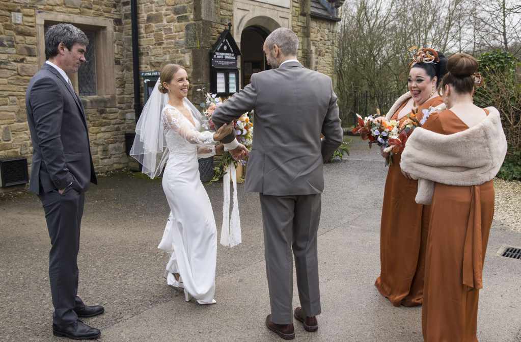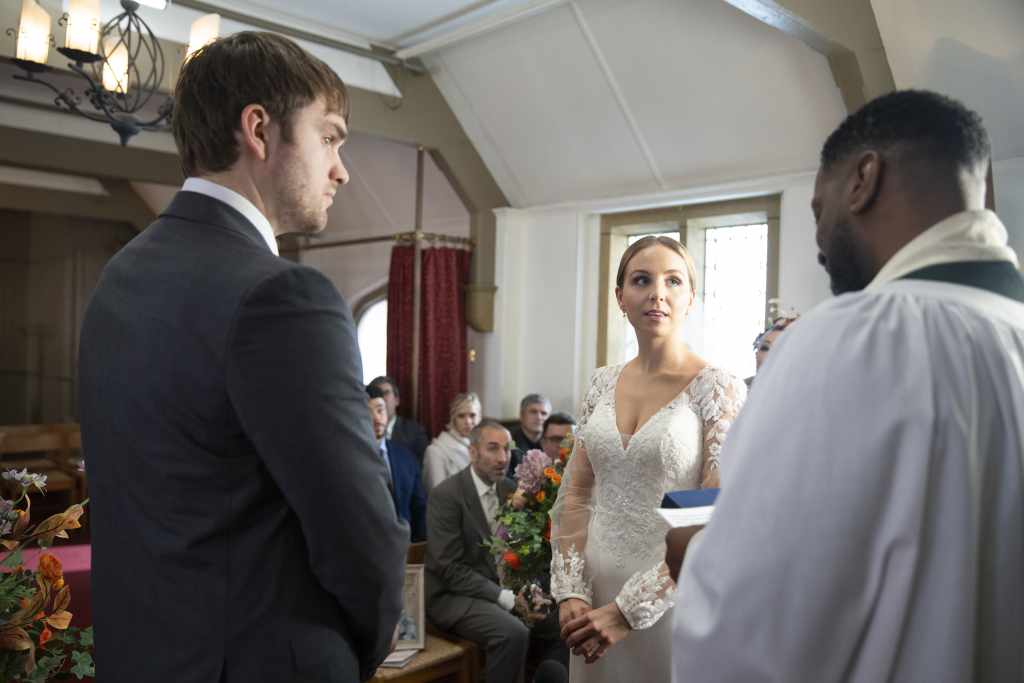 There’s excitement amongst the guests as they prepare for the wedding outside the Church. Just in the nick of time, Sam arrives to give Belle away, bringing a letter from Lisa with him. Tom’s frustrated by the Dingles’ oddities as the ceremony commences. The couple prepare to take their vows and after a couple of minor hiccups, the happy couple finally get wed. Belle and Tom take some time to greet their guests after the ceremony.