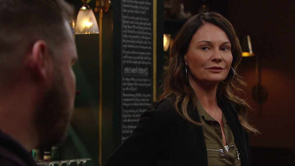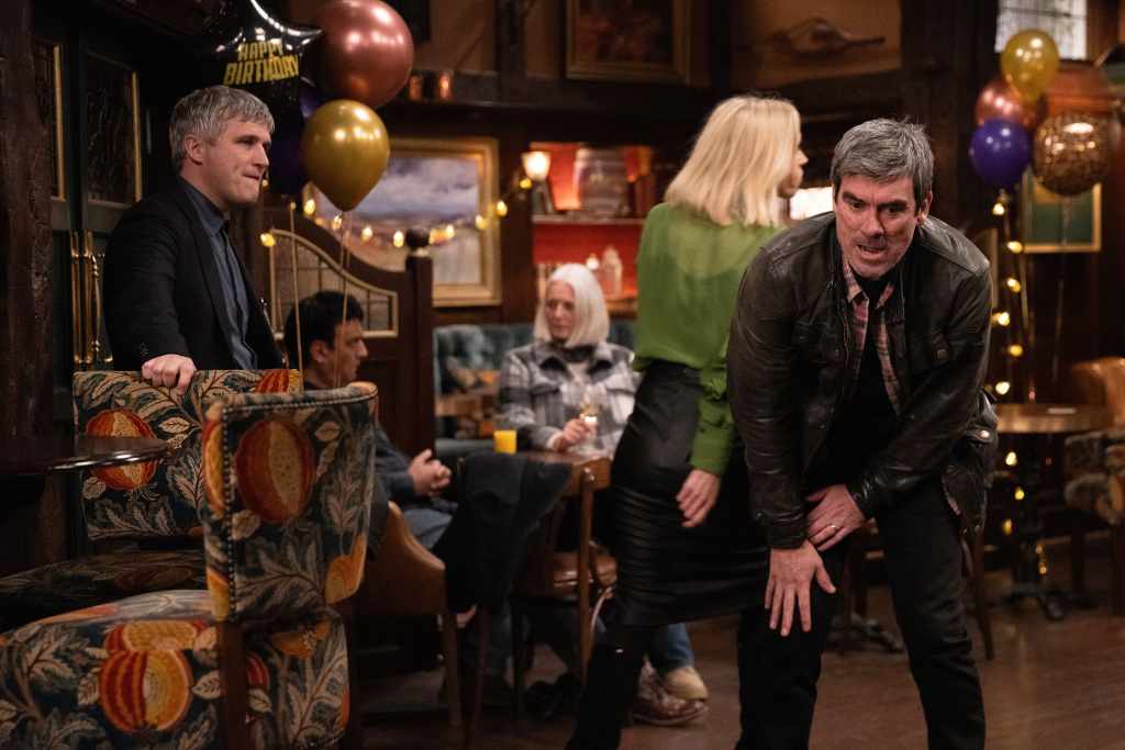 As Chas to prepares to go see Mandy for her birthday, she pushes Aaron to make an appointment for his gene test referral. He’s evasive and left uneasy at her unrelenting pressure. Overhearing conversations about the faulty BRCA2 gene from gossiping Dingles in The Woolpack, Ruby’s insistent that Caleb tells her what it’s all about. The Dingles look over as an argument brews and Chas wishes the ground would open up. Ruby and Caleb’s row soon escalates, and the commotion spurs Cain to intervene. Caleb tries to comply and move the argument outside, but Ruby is steadfast. The confrontation ends with a knee to the groin for Cain and shocked Dingles all round…