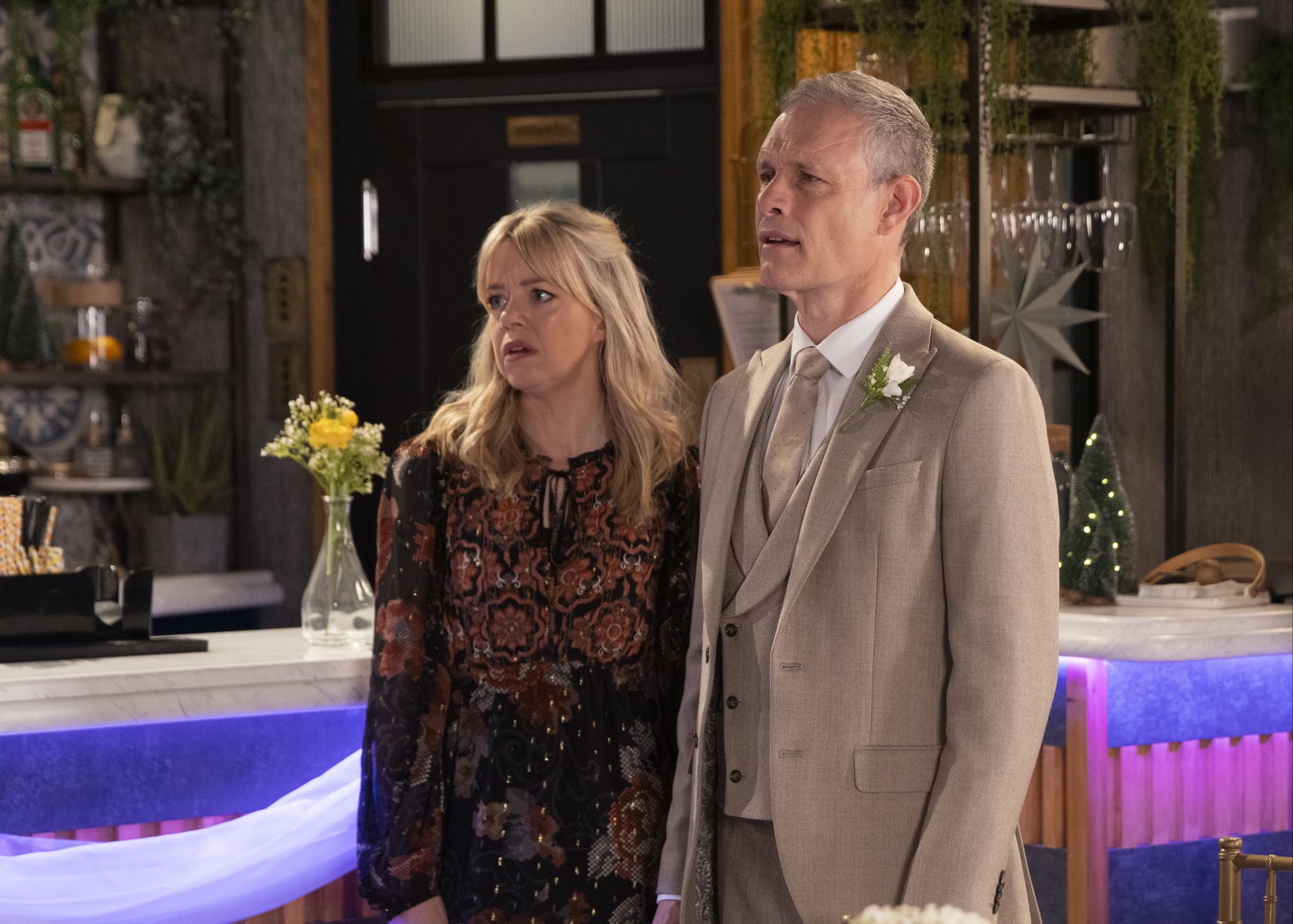 Toyah arrives in the bistro to help Nick set up for Gail and Jesse’s wedding, explaining that Leanne has lifted her ban for the occasion. As guests arrive, the police show up and tell Nick and Toyah that they need to ask them some questions on a fraud allegation. As Kit shows Nick the account from TLH Holdings, Nick assures Kit he’s never seen them before. At the station a row with Toyah and Leanne escalates into a fight and Max films it