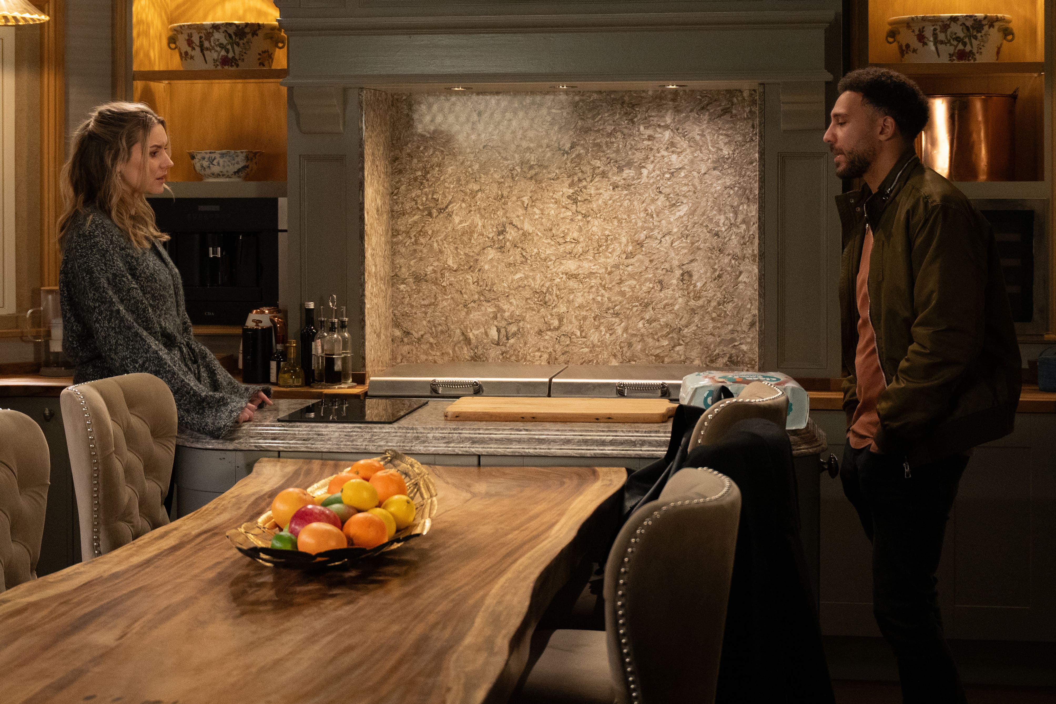 A spilt drink soon leads into a very public row between Chas and Ella.