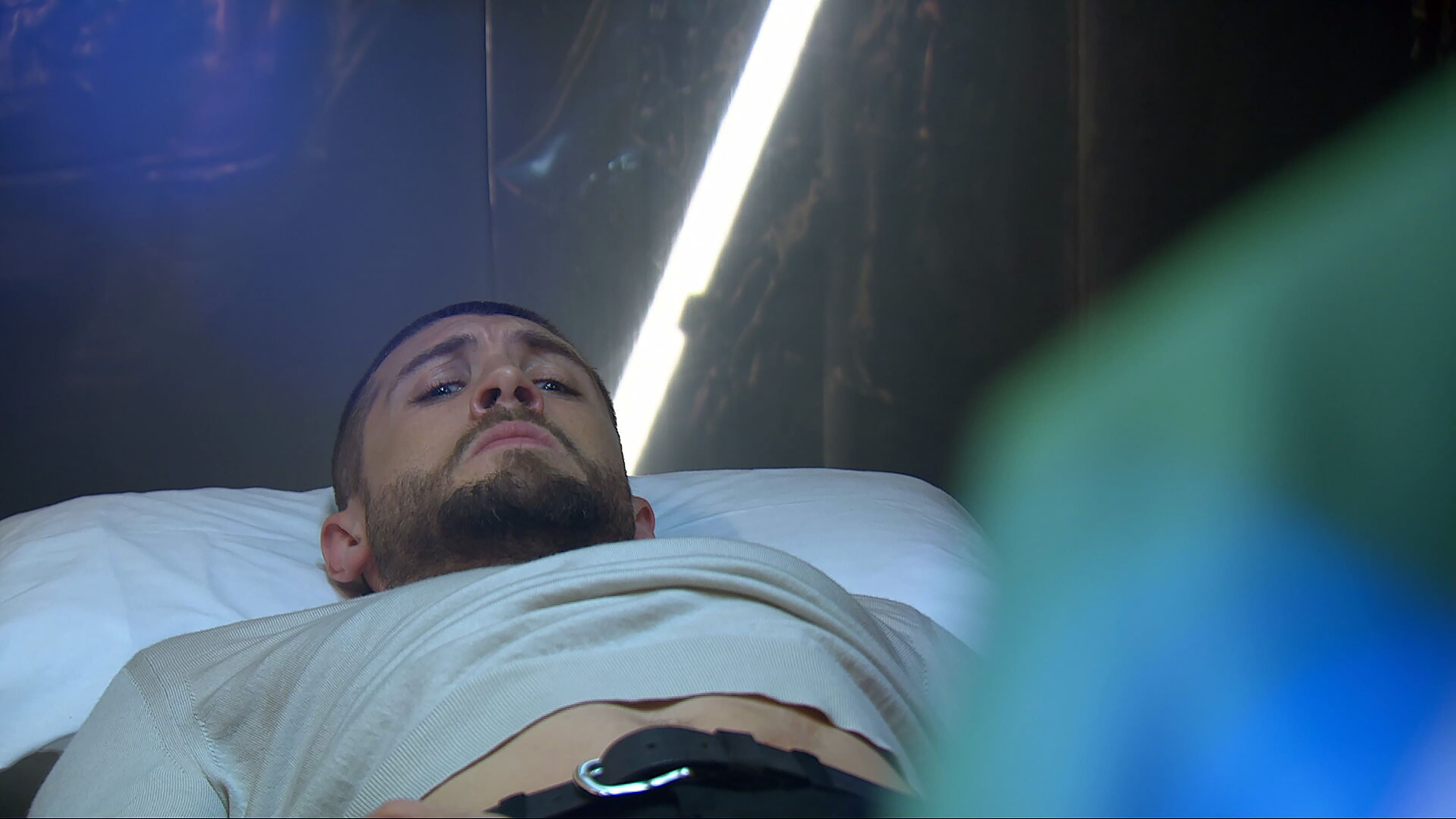 After talking things through with Sam, Joe decides to get away and later tells Dawn he’s got a short notice departure for a business trip.But just as he’s ready to go he gets knocked out cold by a shovel-wielding Shaun. Woozy and disorientated, Joe awakens in a makeshift hospital room to a menacing Crowley looming over him.