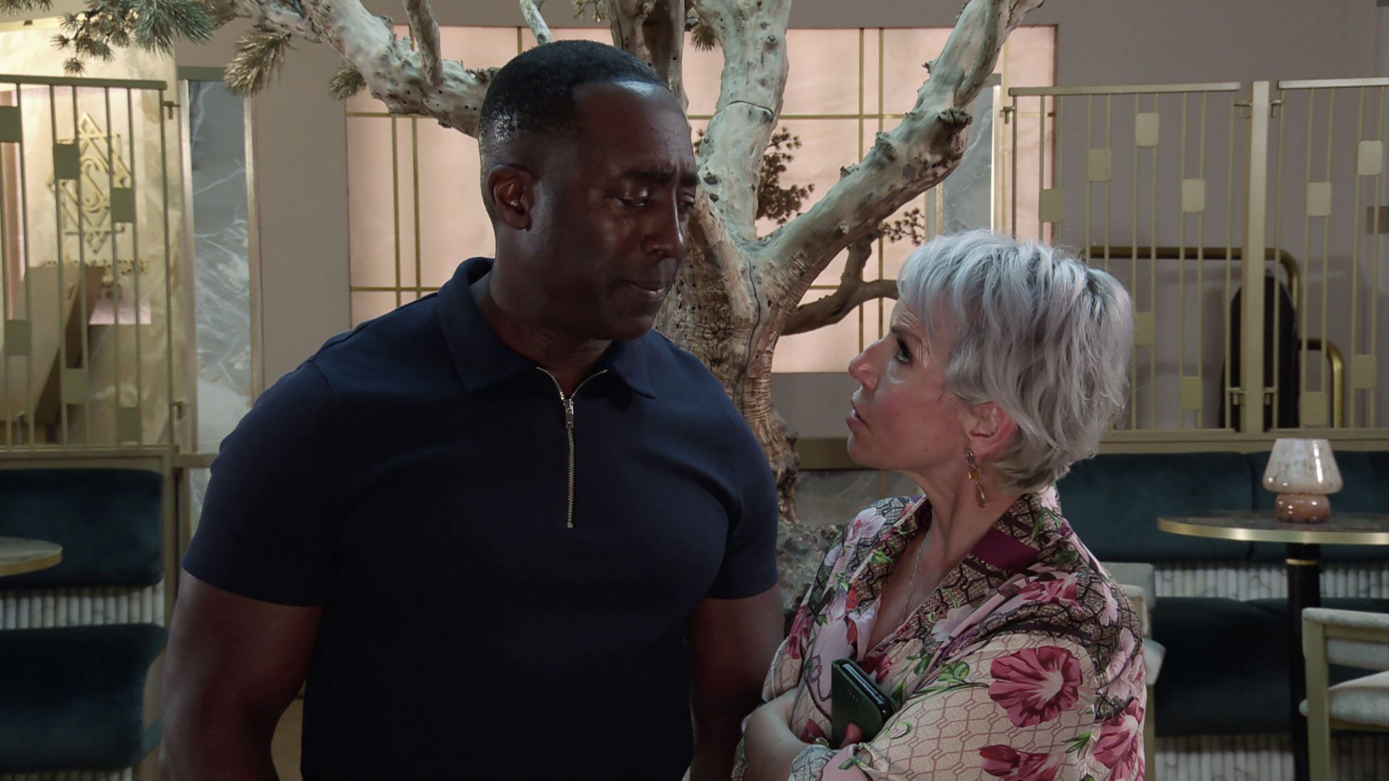 ELSEWHERE Kevin assures Tyrone that he’s to tell Abi the truth about his cancer once they’re back from their weekend away.