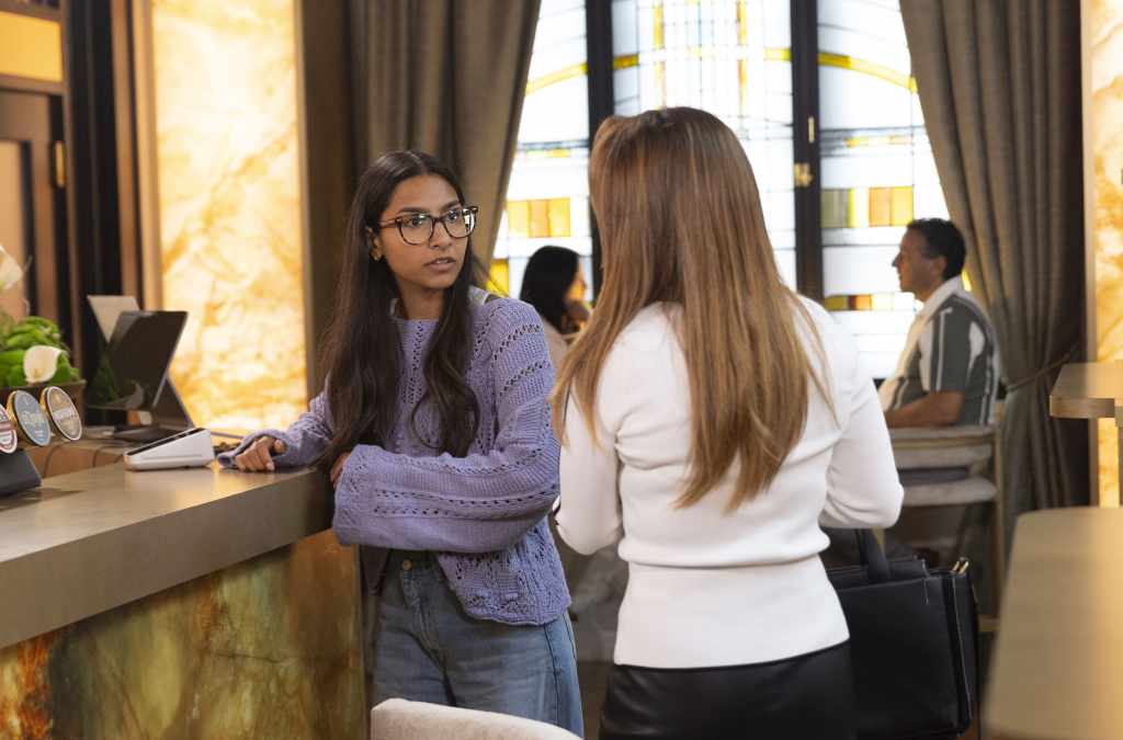 At first, it’s shock but also at that point in time, the whole scenario is playing back in her head a little, because Asha does try to see the good in people and she can’t quite comprehend that somebody could’ve done that. In general, she can’t comprehend that somebody could have been that horrible, aggressive and everything that she did to her. It’s taken her back to being scared, and now she hasn’t got her brother with her, she feels like she’s facing it alone a little bit. When she’s at work, she’s trying to prove herself time and time again that she’s strong and mature enough to do this, but it takes her back into being like, ‘No, I can’t’. She’s petrified.