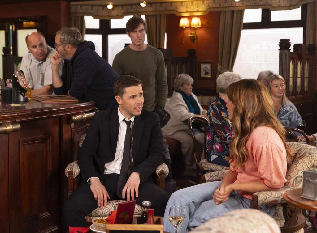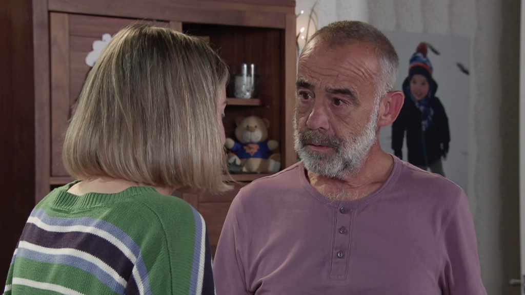 CARLA MAKES BECKY’S POSITION CLEAR Becky quizzes Betsy about the last four years, hoping to make up for lost time. But Betsy gets upset and hurries away. When Becky calls, Carla asserts that it would be best for everyone if she went back to playing dead. ELSEWHERE Fiz admits to Maria that she’s feeling the strain with Tyrone in hospital.