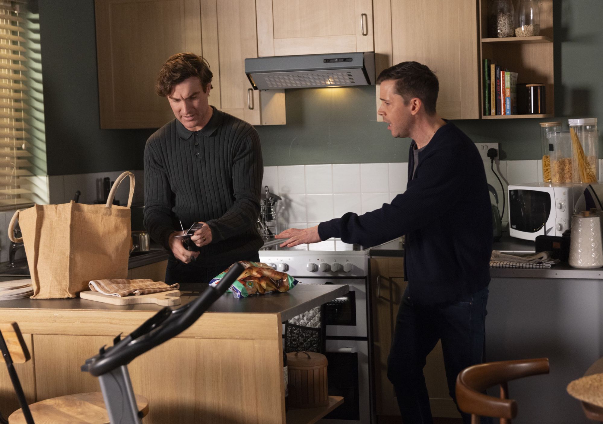 TODD’S IN THEO’S DEBT Theo opens Todd’s post and shows him a final demand from a credit card company. Todd’s embarrassed and promises him that it’s in hand. At Theo’s insistence, Todd cuts up his bank cards and agrees that he’ll use cash from now on in a bid to curb his spending.